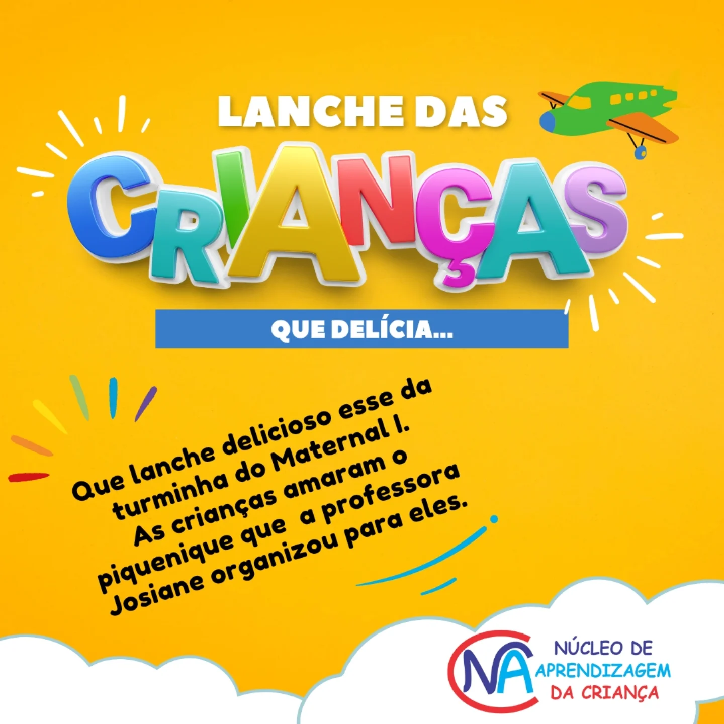 Aqui no NAC, o atendimento integral é pensado com carinho e qualidade. As crianças vivenciam momentos de aprendizado, brincadeiras, descanso e alimentação equilibrada, sempre acompanhadas por uma equipe atenta e acolhedora.